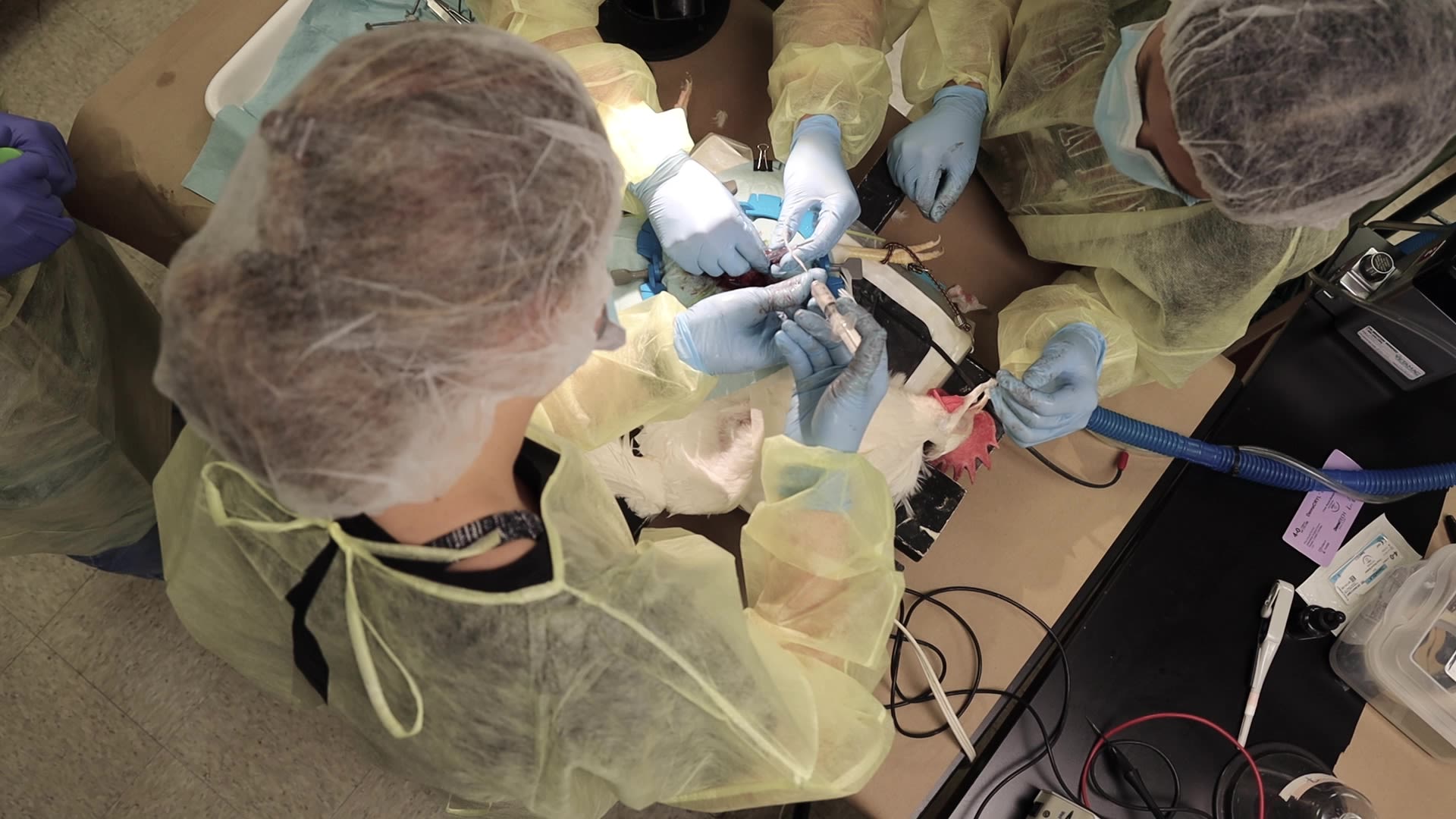 “There are very few opportunities to get experience like this, and it gave me a lot of really good practical skills for veterinary work — drawing blood, monitoring the chicken and doing the post-op work is really beneficial,” said Foungthong. “And not just for pre-vet, but also for pre-med and nursing students.”