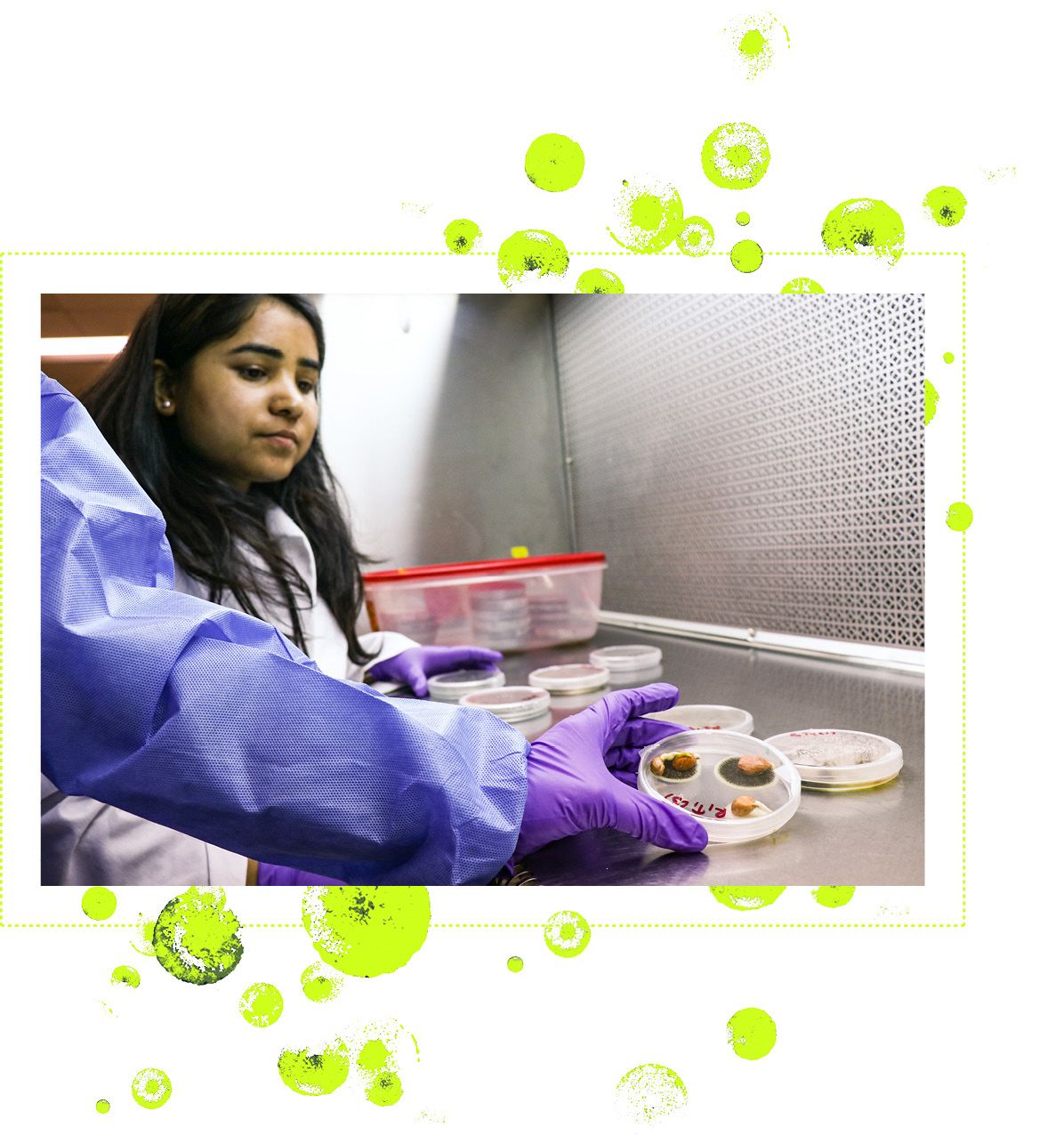 Inset: Samples grow in a humidifier in the Brewer Lab. (Photo by Katie Walker)