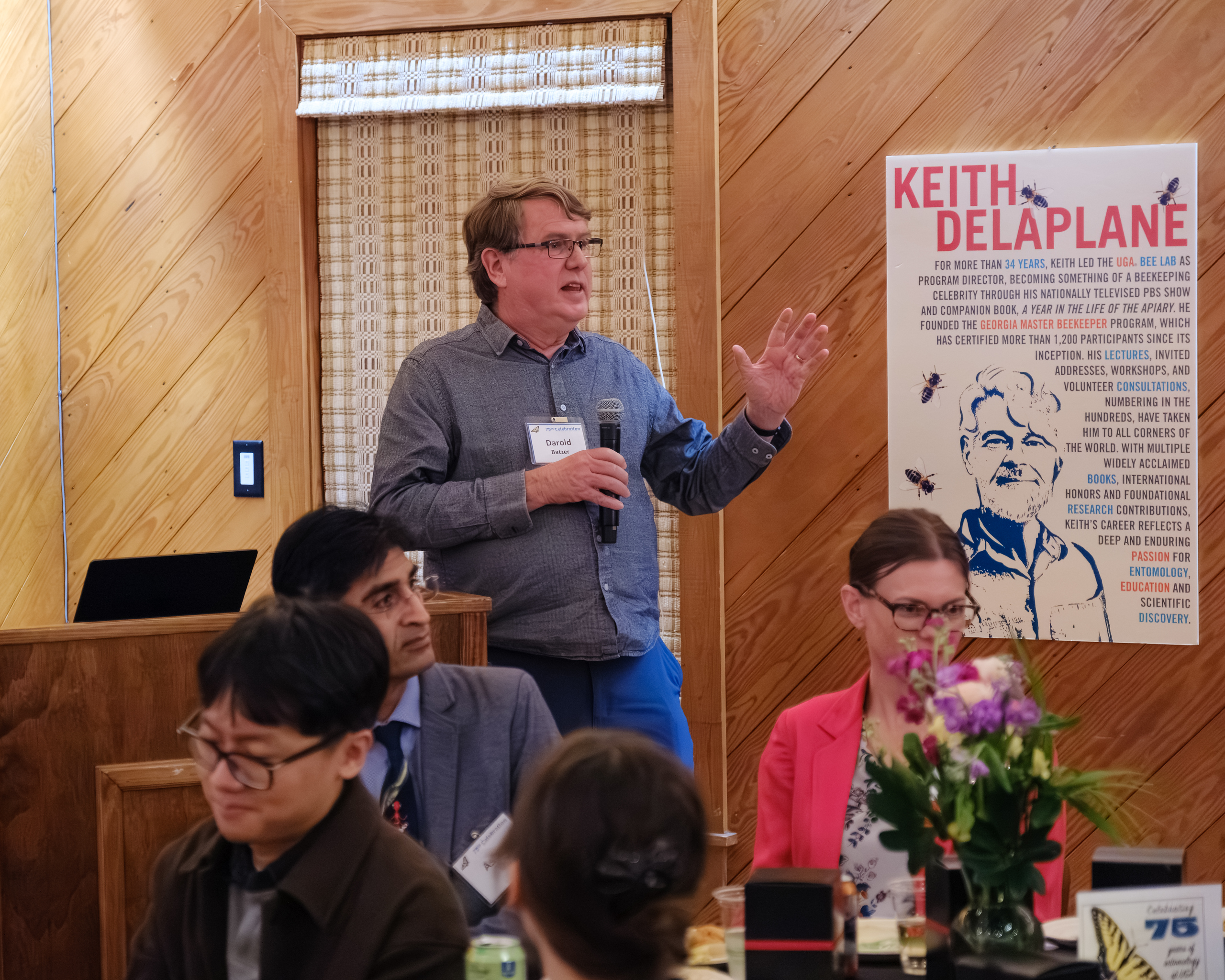 For more than 34 years, Keith Delaplane led the UGA Bee Program and became a nationally recognized authority in apiculture. Early in his career, his PBS series “A Year in the Life of the Apiary” and its companion book brought him widespread recognition. His pioneering research established North America’s first economic threshold for Varroa destructor mites and advanced integrated pest management strategies.