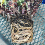 When selecting plants, check the roots to make sure that they are not diseased. A healthy root system is important on young plants as it provides the primary means for rapid establishment and good plant growth at the new site. The root system should have active white root tips and be large enough to support the plant top. Make sure plants are not pot-bound — roots should be well dispersed in the container with room to grow. Pot-bound plants have roots that are matted thickly and which circle the pot. These are more difficult to establish and may develop girdling roots that will shorten the life of the plant.