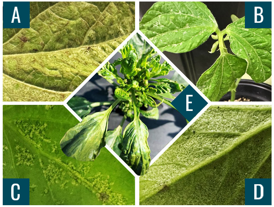 Photos: A–D. Navdeep Kaur, University of Georgia; E. Anna Mészáros, commercial vegetable Extension agent, University of Florida IFAS Extension, Palm Beach County.