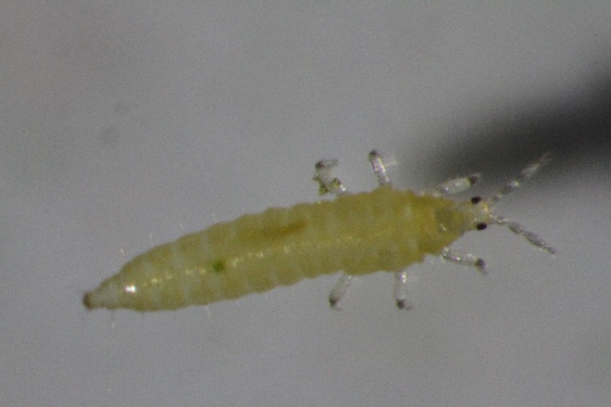 Males are entirely yellow and measure about 0.6 mm in length. The first instar larva is translucent white (Figure 2), while the second instar is pale yellow (Figure 3). These larvae feed on plant tissues for several days before pupating and emerging as adults.